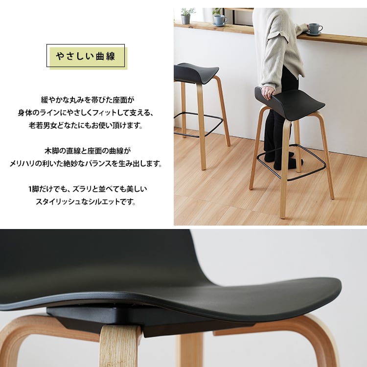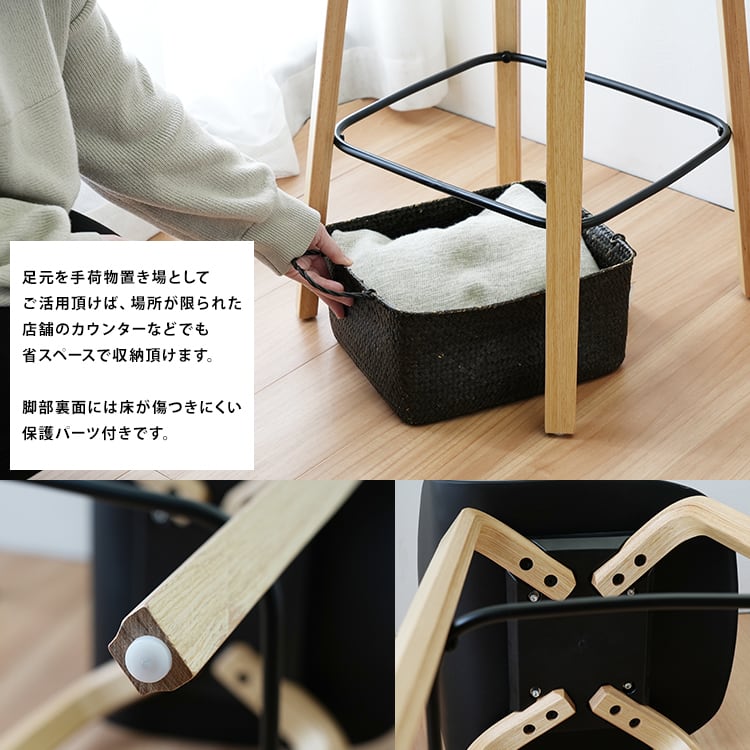 北欧風デザインのカウンターチェア。シンプルながら存在感のあるデザインが、おしゃれなカフェやバーカウンターにぴったりです。座面は広く、クッション性もあり、長時間座っていても疲れにくいのが特徴。また、脚部には床を傷つけないようにフェルトパッドが付いており、安定感も抜群です。